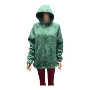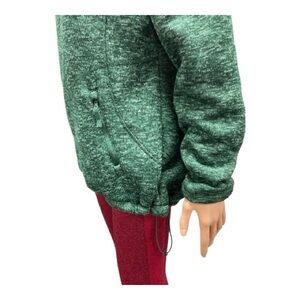Experience comfort and style with this emerald green zip-up hooded jacket from Mountain Warehouse in Size 12, excellent condition. Jacket features a Sherpa lining, adjustable bungee string waistband, outside zippered pockets, and inside pockets. Ideal for cold weather wear and layering.