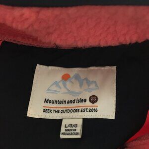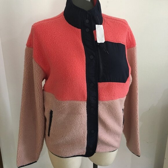 Mountain and Isles Snap Up Jacket Faux Sherpa Peach and Navy Blue Size Large NWT