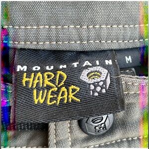 Mountain Hardwear Men's Nylon Cargo Hiking Shorts. Two front pockets, velcro pocket on leg. Adjustable belt, zip snap closure.