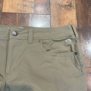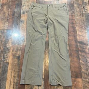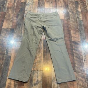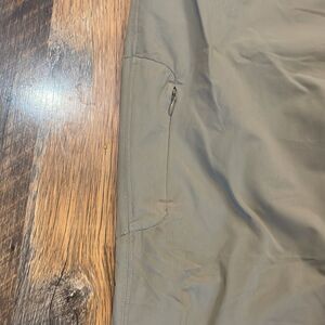 Great condition pants with quick dry material. The waist measures 17.5 inches across and has a rise of 9.5 inches the inseam measures 32 inches. There are two front pockets and two back zipper pockets along with a side zippered pocket