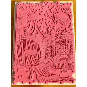 Mounted Red Rubber Stamp Wood Block “New York Diva” Hampton Art