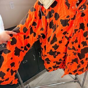 Mount’n Prairie Orange Camo Cow Print Hunting Jacket Bibs Overalls Large Flyway