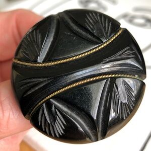 Black round mourning Brooch