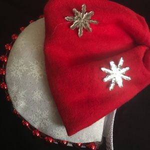 Handmade, snowflake winter mouse ears, red and white