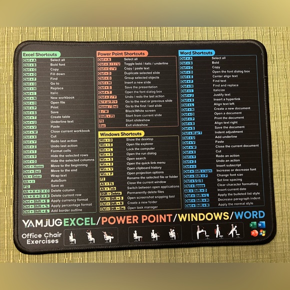 Brand new Mouse Pad with Stitched Edge for Excel/Word/PowerPoint/Windows Shortcuts, Small Excel Cheat Sheet Desk Pad, 10.2x8.3x0.12inch Portable Computer Mousepad for Gaming, Office, Home, Non-Slip