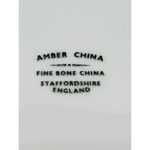 Mouse Party Straffordshire Amber Bone China Handled Cup 6 oz Pink Trim.