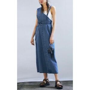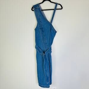 Moussy Asymmetry Denim Jumper Dress. Size 1 (US small) see photographed measurements & manufactured sizing to ensure fit. *In my model photo I tucked in the skinny shoulder strap* Tags: boho, bohemian, breezy, cottagecore, spring, summer, fall, light, airy, artisanal, anthro, brunch, day date, winery, hippie, festival