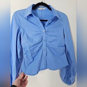 Moussy Blue Rouched Button Down Long Sleeve Top F