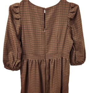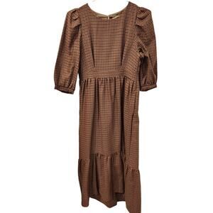 Moussy Checkered puff sleeve brown midi dress size small