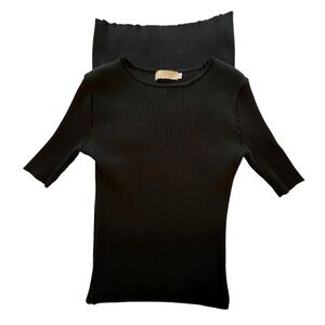 Moussy Crew Neck Ribbed Sweater Dress Black Long Stretchy Small