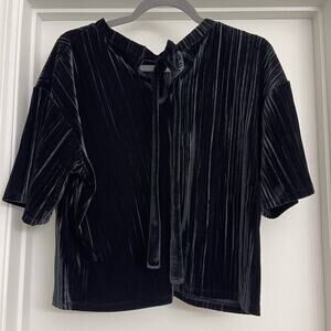 Moussy Daydream Nation Embroidered Velvet Velour Cropped Blouse Black One Size