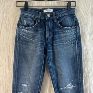 Moussy Distressed Mid Rise Skinny Ankle Jeans Dark Wash Blue Womens Size 24