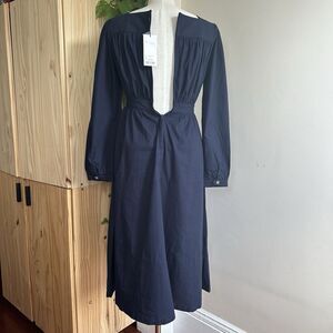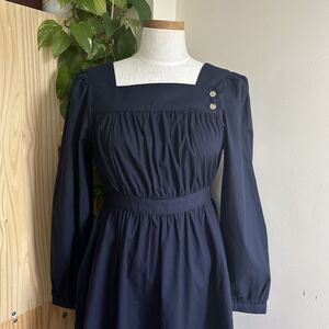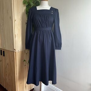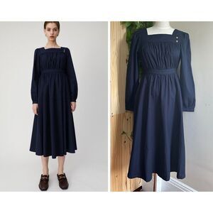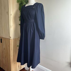 Moussy Midi Dress 1 S Square Neck Cinched Empire Waist Cottagecore Milkmaid Navy