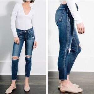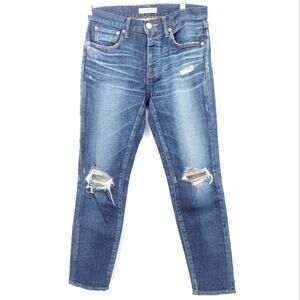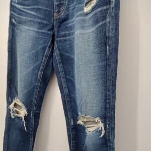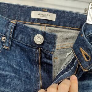 Moussy Vintage Isko Comfort Ivey Distressed Skinny Jeans Size 26. Great condition! See photos. Features zip fly and button closure, distressing, frayed, whiskering detail, medium dark wash blue denim. Body 95% cotton 4% polyester 1% spandex, Label cowhide leather.