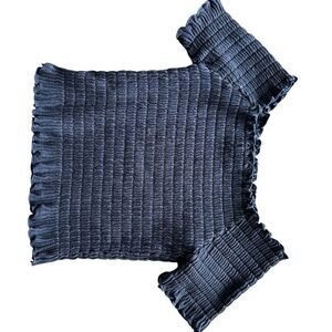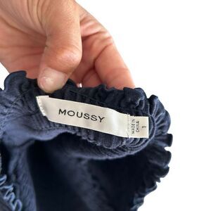 Moussy Navy Blue Smocked Boat Neck Off Shoulder Crop Top Size 1 Y2K Coastal