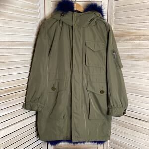 Moussy NoBorder Olive Green Blue Fur Trim Graphic Surprise Heavy Parka 1 S