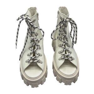 Moussy Open Toe Chunky Boots White Lace Up Ankle US 7 Combat Style