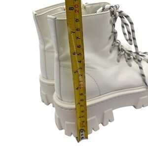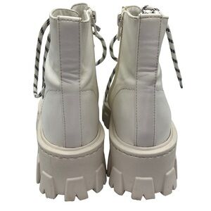Style Tags: chunky combat boots, open toe booties, lace-up platform, statement ankle boots, white leather look