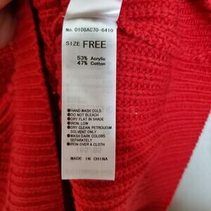 Moussy Red Elbow Sleeve Cable Knit Crew Neck Pullover Sweater Free Size Classic