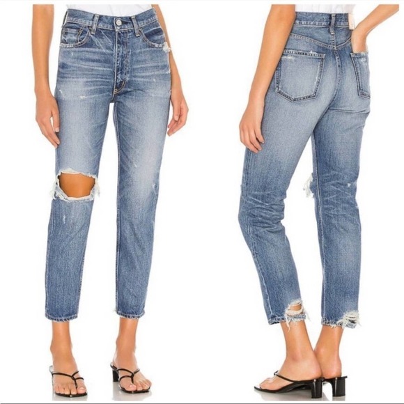 Moussy Vintage Denim High-rise Marshall Boyfriend Distressed Jean 100% Cotton 25