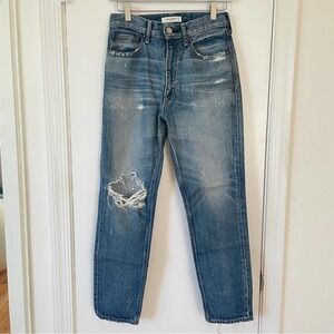 High-waist Ankle length Distressed Ripped Japanese Denim 100% Cotton In size 25