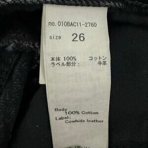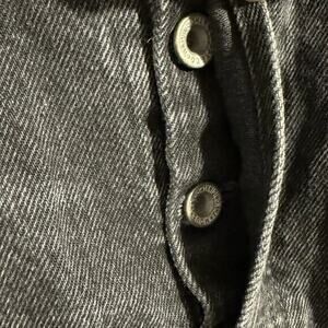 Size: 26 / 2 Features: black faded denim, whisker details, 5 pockets, distressed, button up closure, raw hem. 100% Cotton. Style 101BAC11-2760. Excellent preowned condition