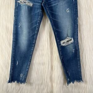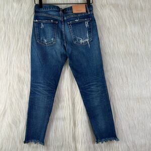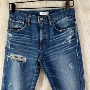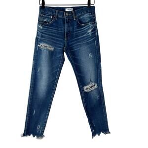 Moussy Vintage Howa Jeans Medium Wash Blue Distressed Raw Hem Womens Size 26