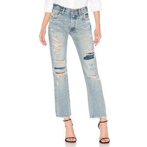 Moussy Vintage Jones Destroyed Straight Jean in Light Blue