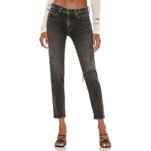 Moussy Vintage Lenwood Distressed Skinny Ankle Jeans Washed Black Cropped Sz 24