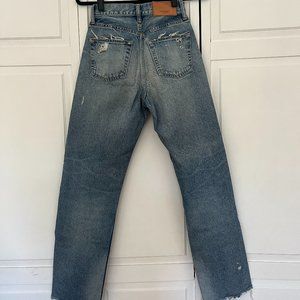 MOUSSY VINTAGE "Lomita" straight-leg jeans with a raw hem in rigid, light wash denim