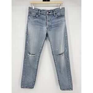 Moussy Vintage | MV Maverick Tapered Mid Rise Jeans Light Blue Distressed 29