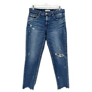 Moussy Vintage MV Mid Rise Heavily Distressed Skinny Jeans Size 29 Raw Hem Ankle