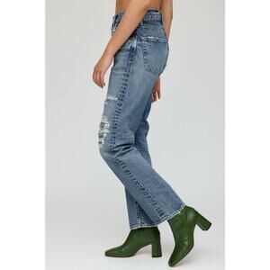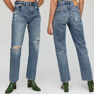 Moussy Vintage Plymouth Straight Blue High Rise Distressed Jeans Women's Size 28