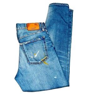 Indulge in the exquisite craftsmanship and unparalleled luxury of the Vintage Dixie Paint Splattered Distressed Jeans by Moussy Vintage. Handcrafted with precision using Japanese Luxury Denim, these mid-rise jeans boast a rare and exceptional design that effortlessly combines sophistication with a touch of edgy glamour. Every stroke of paint splatter and distressing detail is meticulously placed, ensuring a unique and exclusive piece that exudes timeless elegance. Elevate your wardrobe with these jeans that not only epitomize superior quality but also radiate a sense of refined style that is truly unrivaled.