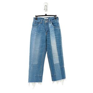 Moussy Women 25 Jeans Blue Straight Leg Patchwork Raw Hem Cotton 010ASH11-0600