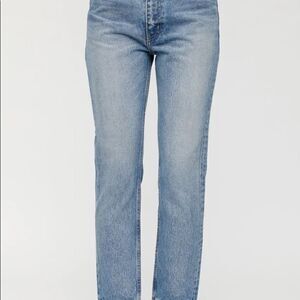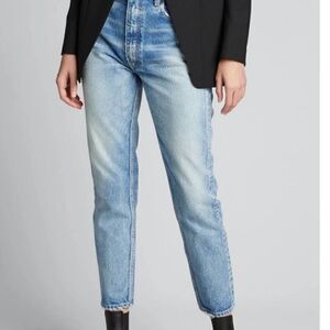Soft fading delivers an authentically lived-in look on slouched skinnies cut from nonstretch Japanese denim.