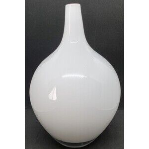 Stunning Mouth Blown White Vase and clear at the bottom. The punt on the bottom is level and smooth as well as the top of the bud vase. Very nicely blown. The bud vase is so pretty with Red Rose Buds in it. Think of Valentine's Day, Mother's Day, Birthday or just a day. It is heavy at 2 punds. It is 7" tall x 5.5" wide. I ship in a larger box then the size in order to be able to wrap it very well. Sold as is. Please follow me to see new listings.