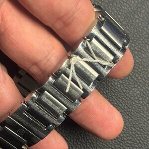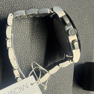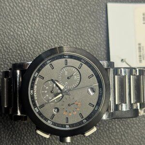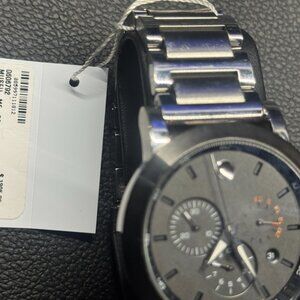 USED (Good Condition -ware on bracelet and scratch on back cover from battery replacement 9/25-NEW)Movado Signature Sport watch, 44mm stainless steel case and bracelet, black PVD bezel, black dial featuring stainless steel polished hands with lumi, sapphire crystal, Swiss Quartz Chronograph movement