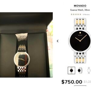 Sleek Movado Essence watch with a black dial and gold accents. Elegant design for any occasion.