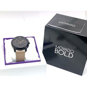 Movado Men's Watch 3600719 Swiss Quartz Chronograph Black Dial Leather Band 42mm