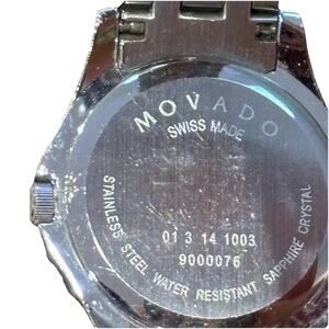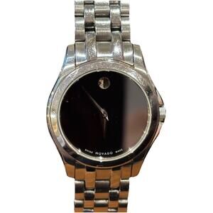 Movado Museum Collection Stainless Steel Women's Watch Silver Butterfly Clasp Black Dial