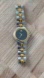 Description: Vintage luxury watch! Two-tone bracelet, black round dial, gold tone hands and markers. Just serviced with new battery installed.