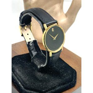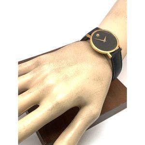 Movado Watch 87-45-882 Vintage Swiss Quartz Gold Black Dial Leather Band 30mm