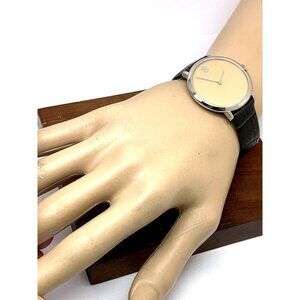 Movado Womens Watch 0607343 Swiss Quartz Ultra Slim Beige Dial Gray Leather Band