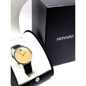 Movado Women's Watch 0607343 Swiss Quartz Ultra Slim Beige Dial Gray Leather (BI3173Y)