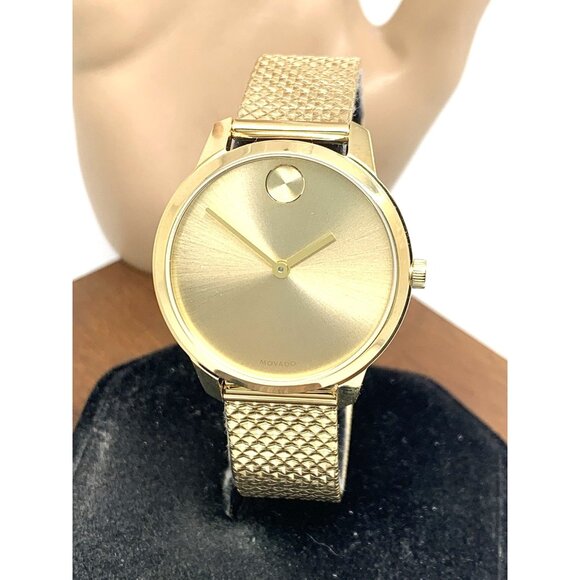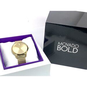 Movado Women's Watch 3600598 Bold Gold Dial Swiss Quartz Mesh Band Steel 35mm