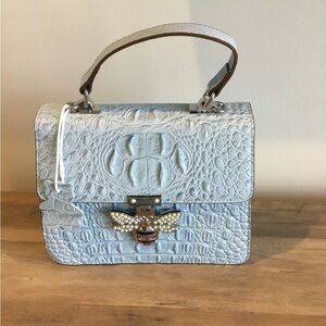 Movdari Blue Crocodile Embossed Satchel Crossbody Handbag w/Bee adorned w/Pearls