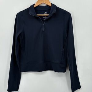 Move Theory Ribbed Cropped Pullover 1/4 Zip Activewear Top Navy Blue Womens Large