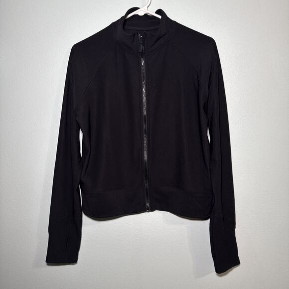 Move Theory Ribbed Full Zip Cropped Zip Up womens XL Black thumbholes athletic