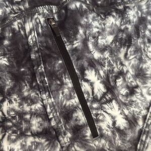 Movemama Tie Dye Activewear Shorts in Black & White - NWOT - Size Large. New without tags. Spandex and polyester fabric composition, super stretchy. 2 zipper pockets on each hip side, pull on style. Approximate measurements: 16" across the top of the waist/belly band, 18" rise from the top of the belly band, 4 3/4" inseam.